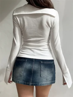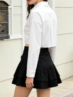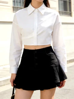 Women’s White Shirts Button Down Long Sleeve Cropped Tops Spring Fall Blouses for Party Club Office Streetwear