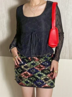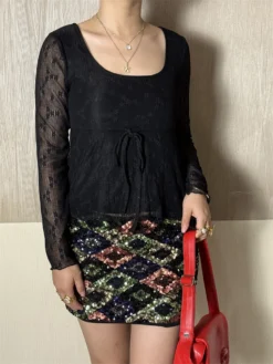 Womens Lace Tops Long Sleeve Halter Cut Out Slim Fit Cropped Shirts Retro Stylish Sexy Elegant Blouse Spring Fall